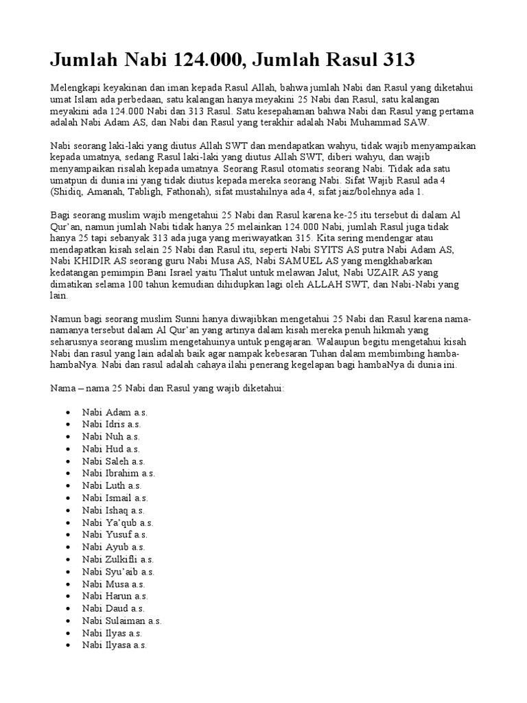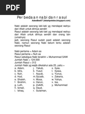 Jumlah Nabi Dan Rasul Yang Wajib Diketahui Islamitu