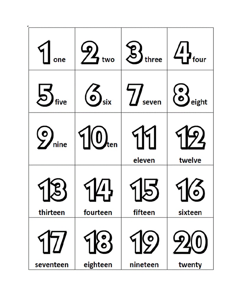Kad Nombor 1 Hingga 20