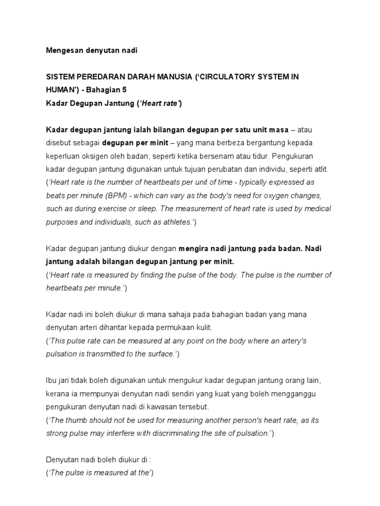 Apakah Yang Dimaksudkan Dengan Denyutan Nadi 87 Per Minit Perubatan 2020