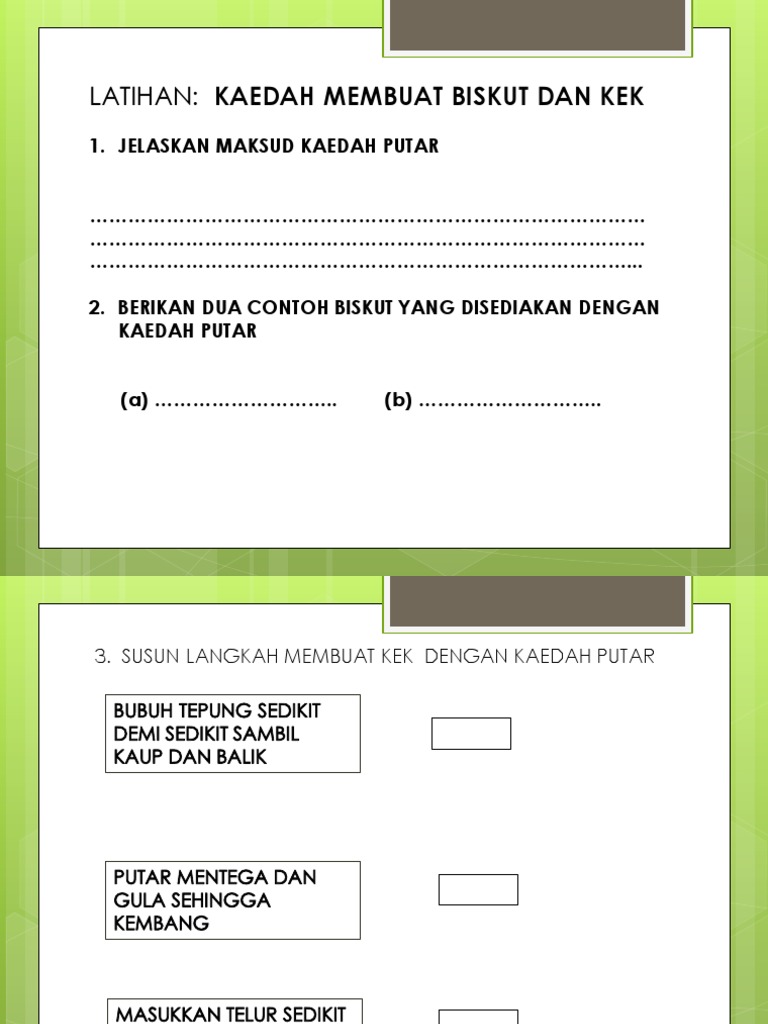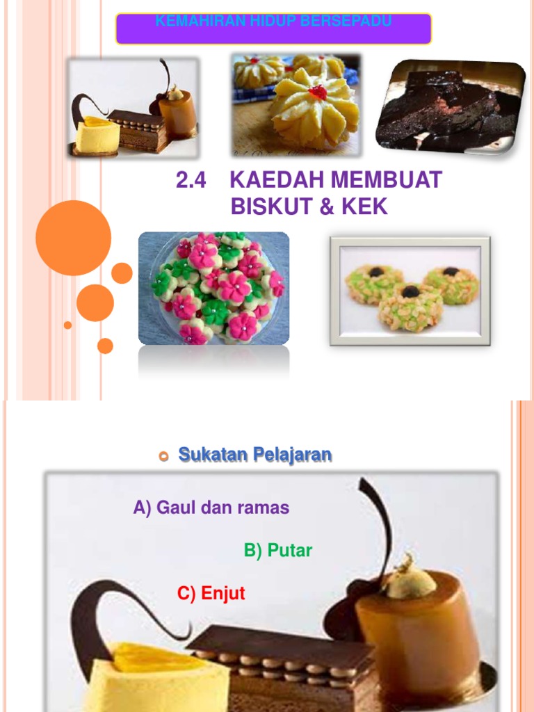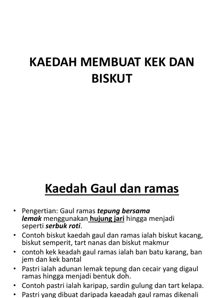 Kaedah membuat biskut dan kek. Kaedah membuat biskut dan kek ert ting 3 kaedah gaul dan ramasi pengertian kaedah gaul dan ramaskaedah gaul dan ramas ialah lemak dan tepung digaul ramas dengan menggunakan hujung jari hinggamenjadi seperti serbuk roti. Biskut kaedah gaul dan ramas. Bentuk dan rasa biskut dan kek boleh divariasikan supaya dapat menghasilkan pelbagai biskut dan kek yang menarik dan sedap.