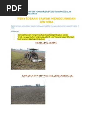 Kaedah penanaman padi secara moden. Kaedah penanaman padi berjentera ini sememangnya sesuai dikawasan sawah padi yang rata mempunyai sistem kawalan air sempurna kemudahan tapak semaian baik infrastruktur jalan dan kemudahan jentera yang mencukupi. Penanaman padi modern beberapa tahun terakhir pertanian organik modern masuk dalam sistem pertanian indonesia secara sporadis dan kecil kecilan. Pertanian di sini mempraktekkan metode penanaman dan penumbuhan hydroponic. Mengenalpasti jenis teknologi moden yang digunakan dalam proses penanaman padi oleh para petani di kampung batu 17 guar chempedak kedah.
