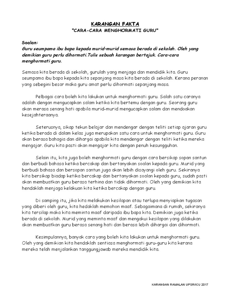 Pdf Contoh Contoh Karangan Upsr 2017 Docx Karangan Keperihalan Cara Cara Menghormati Guru Soalan Guru Seumpama Ibu Bapa Kepada Murid Murid Semasa Course Hero