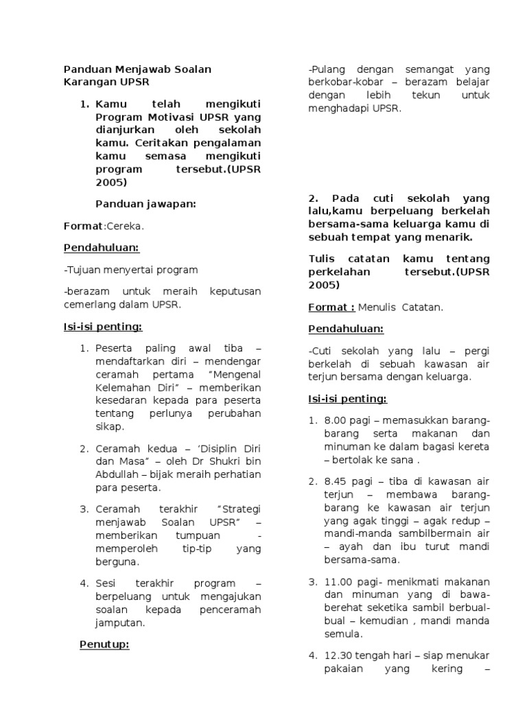 Panduan Menjawab Soalan Karangan Upsr