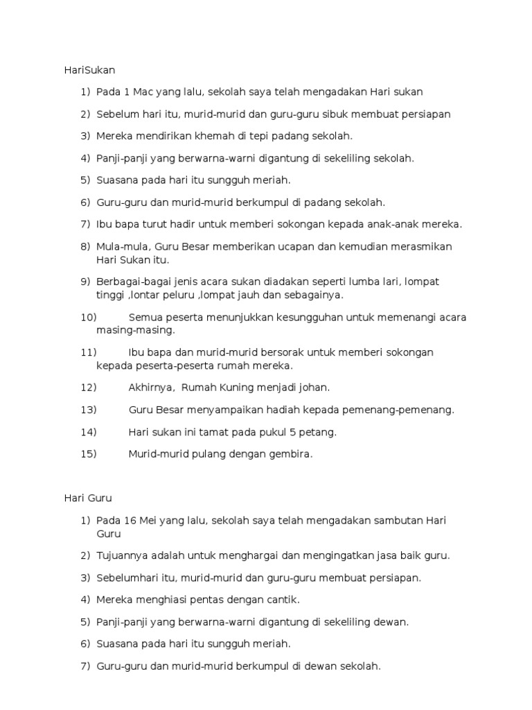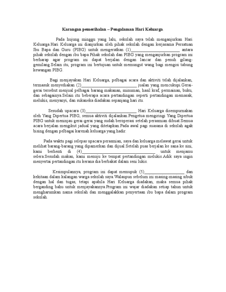 Bahasa Melayu Isi Isi Ringkas Karangan Upsr Doc 60 Contoh Karangan Menggunakan 10 Ayat Mudah Tema Keluarga 1 Tuliskan Sebuah Karangan Yang Bertajuk Course Hero
