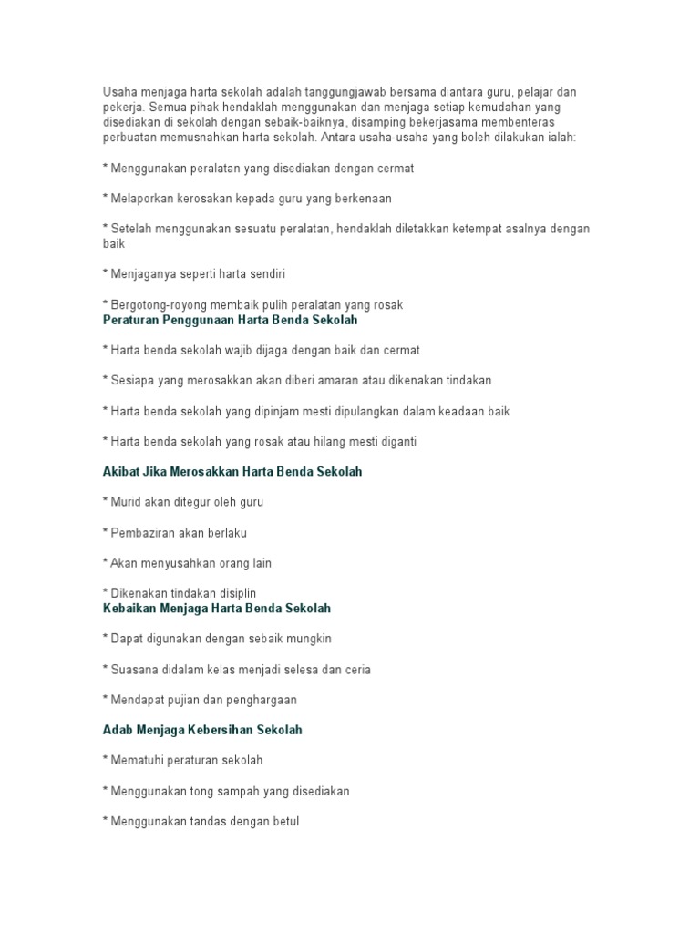 Usaha Menjaga Harta Sekolah Adalah Tanggungjawab Bersama Diantara Guru