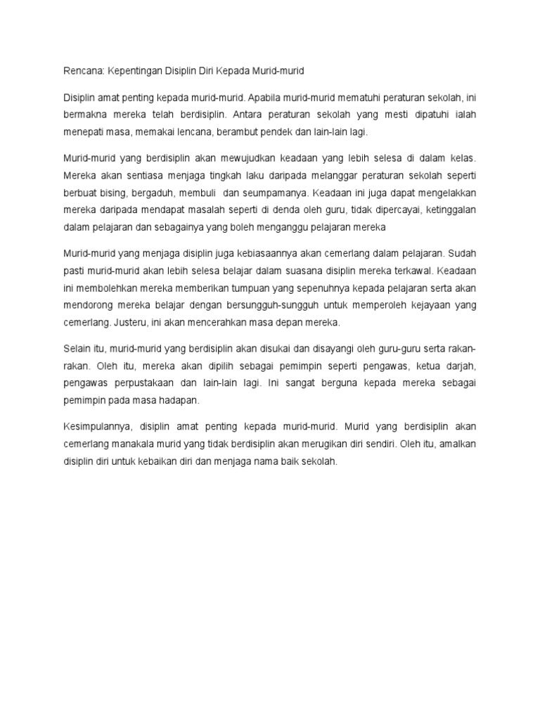 Contoh Karangan Bahagian A Kepentingan Peraturan Di Sekolah