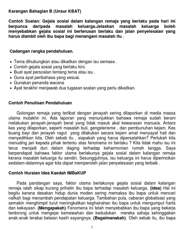Karangan Bahagian B Kbat Docx