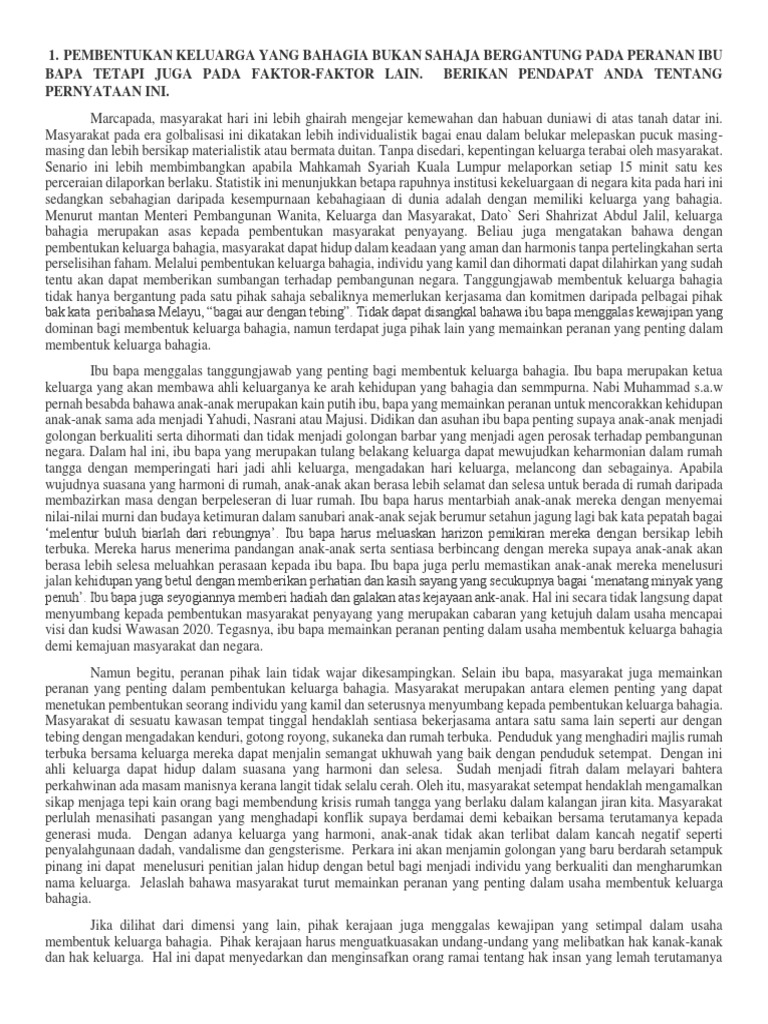 Bm Phong Karangan Keluarga Bahagia Keluarga Citra Masyarakat Pembina Tamadun Bangsa