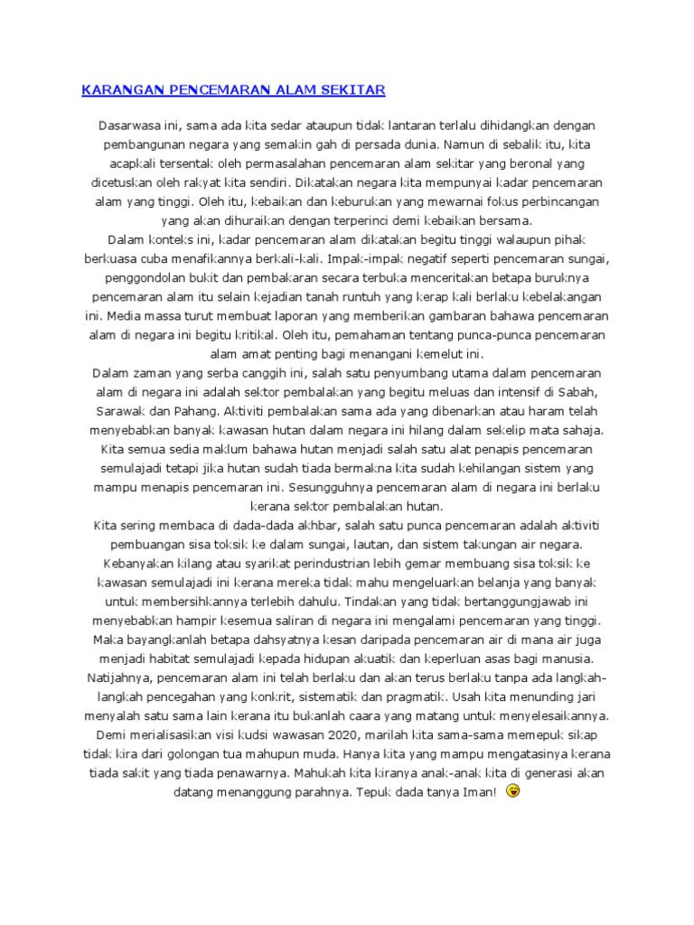 Contoh Karangan Bahasa Melayu Upsr Karangan Fakta Punca Punca Berlakunya Pencemaran Karangan Bahasa Melayu Bahasa