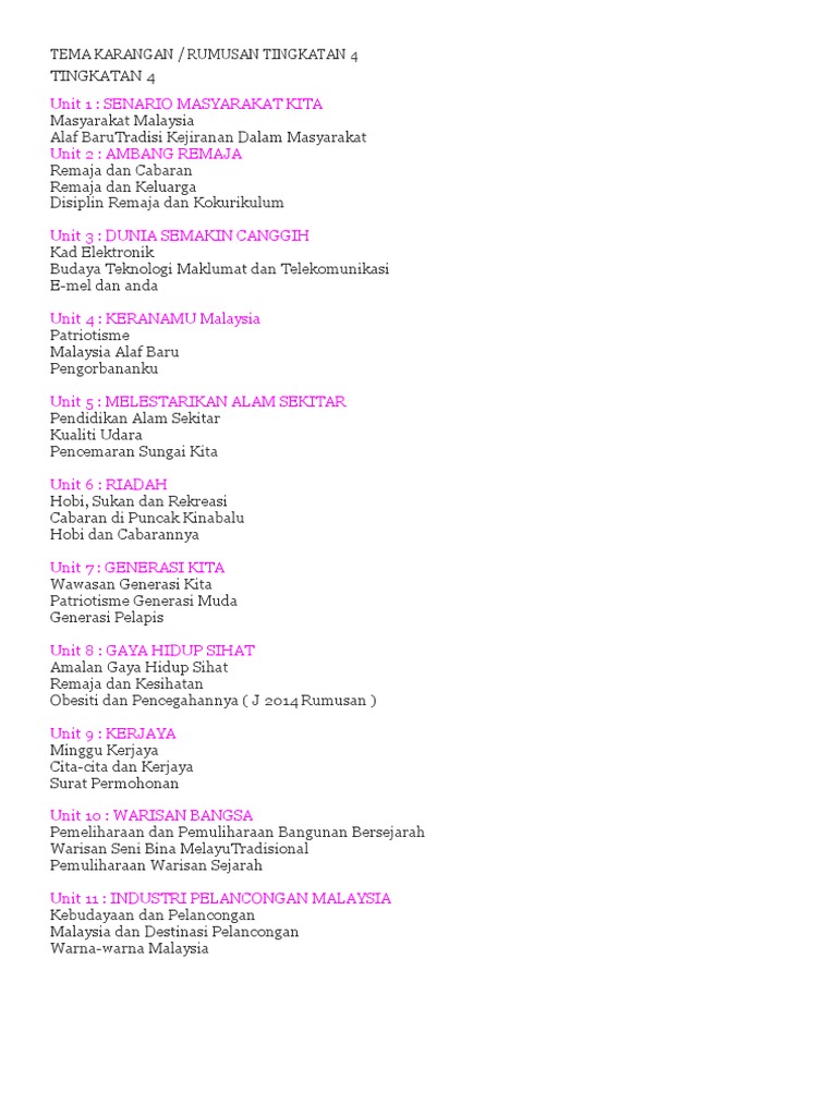Tema Karangan Berdasarkan Unit Buku Teks Tingkatan 4 Dan 5