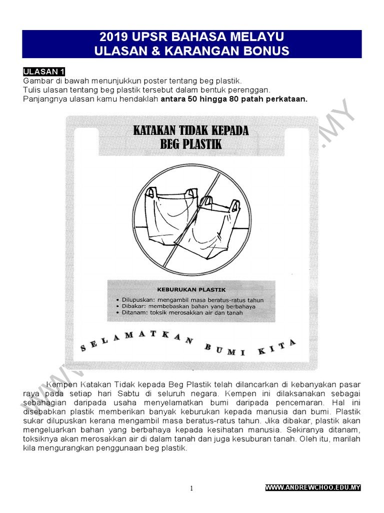 2019 Upsr Bahasa Melayu Ulasan Karangan Bonus Copy Pdf