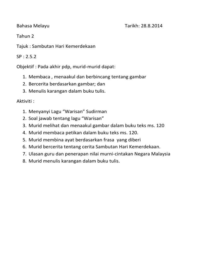 Sambutan Hari Kemerdekaan Di Sekolah Karangan Upsr