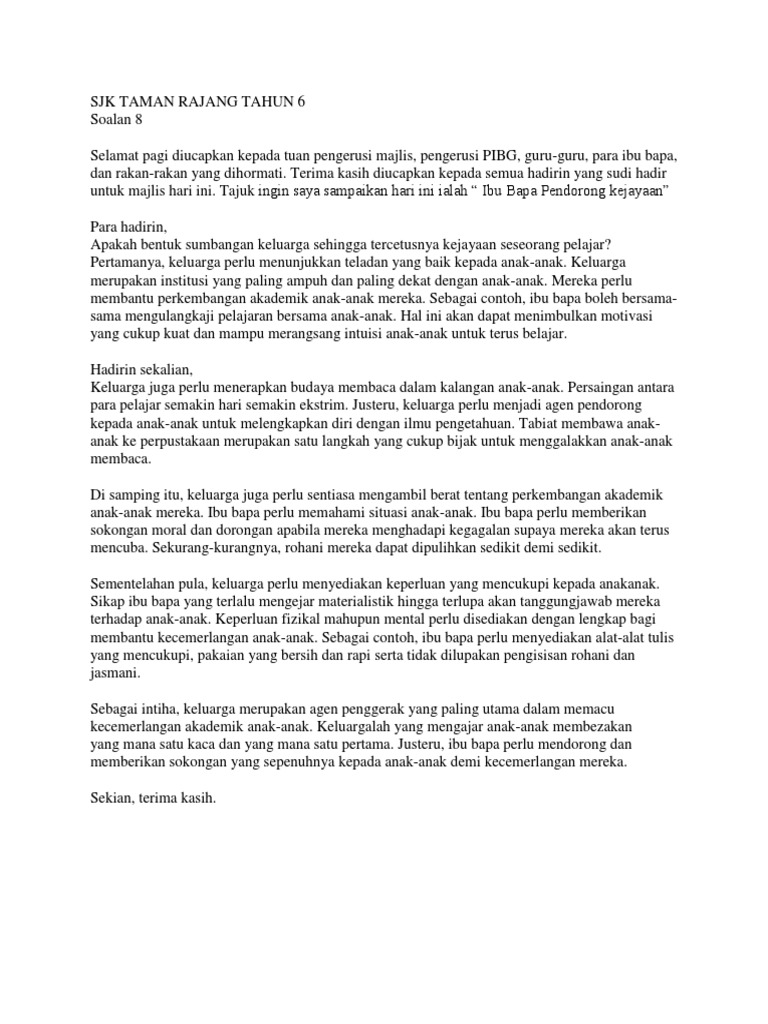 Contoh Karangan Bm Spm Peranan Ibu Bapa Doc