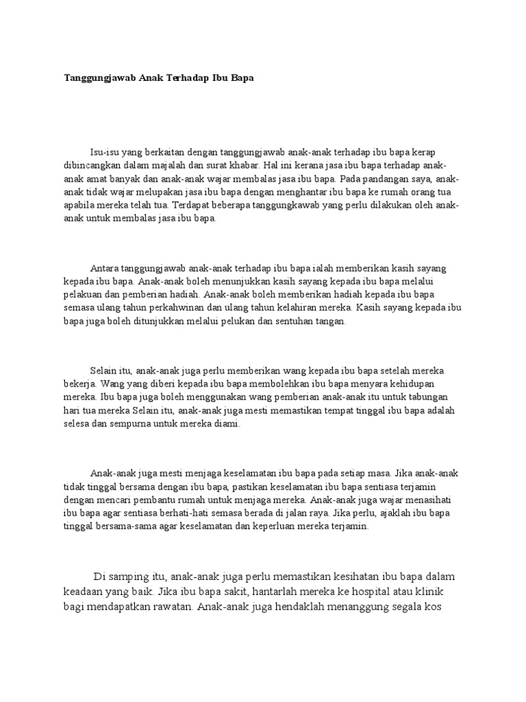 Karangan Tanggungjawab Anak Terhadap Ibu Bapa