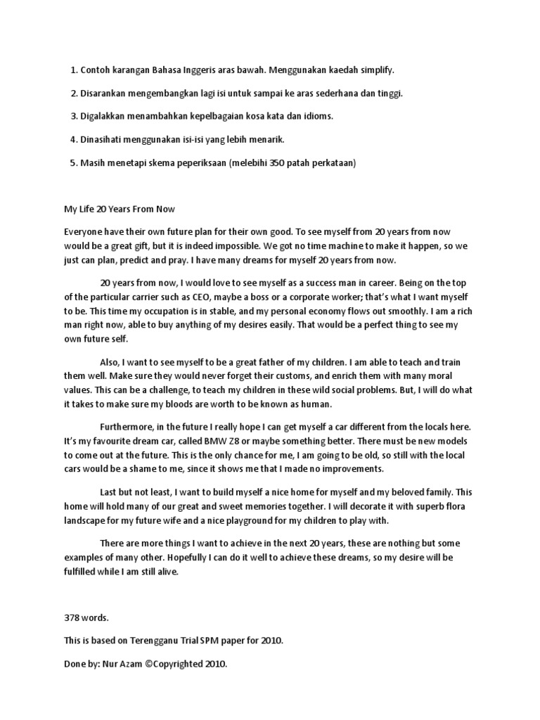 Contoh Karangan Spm Bahasa Melayu