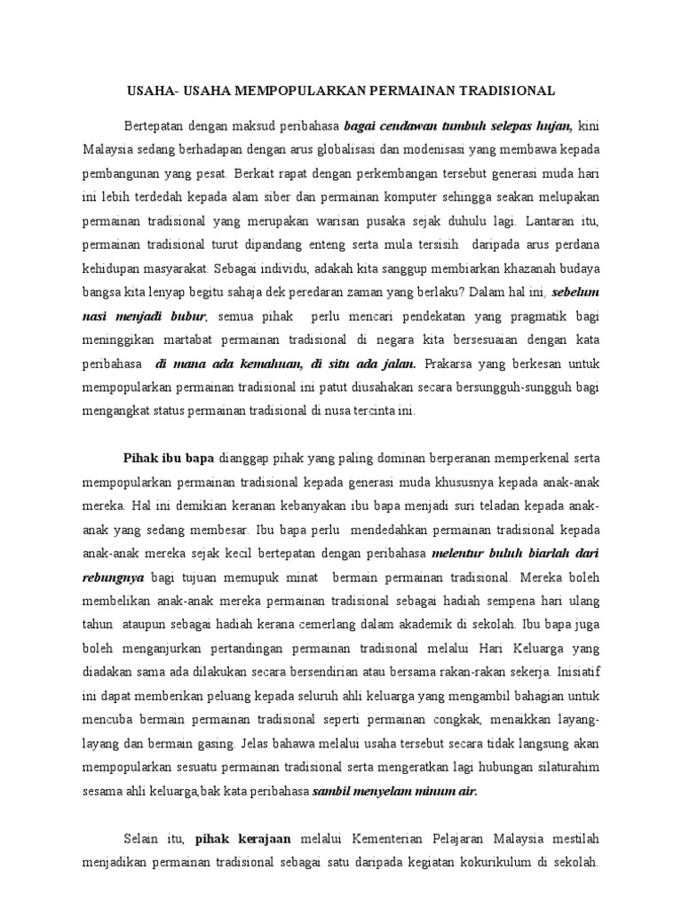 Laman Bahasa Melayu Spm Hasilan Karangan Cemerlang Pelajar Saya Langkah Mempopularkan Permainan Tradisional Soalan Peperiksaan Percubaan Mrsm 2018
