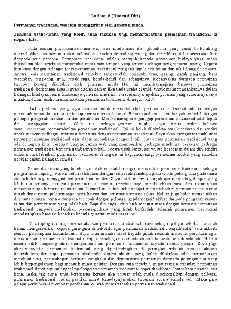 Contoh Contoh Karangan Sekolah Menengah Peranan Pelbagai Pihak Dalam Mempopularkan Permainan Tradisional