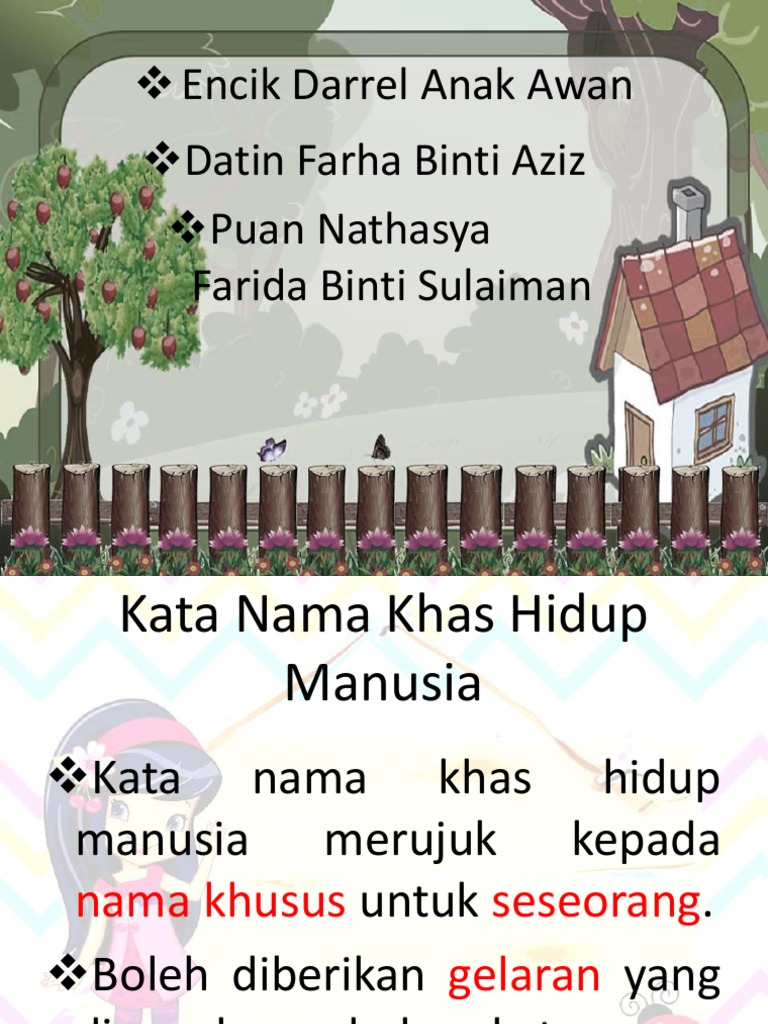 Kata Nama Khas Hidup Manusia Dengan Nama Panggilan Atau Gelaran Tahun 5