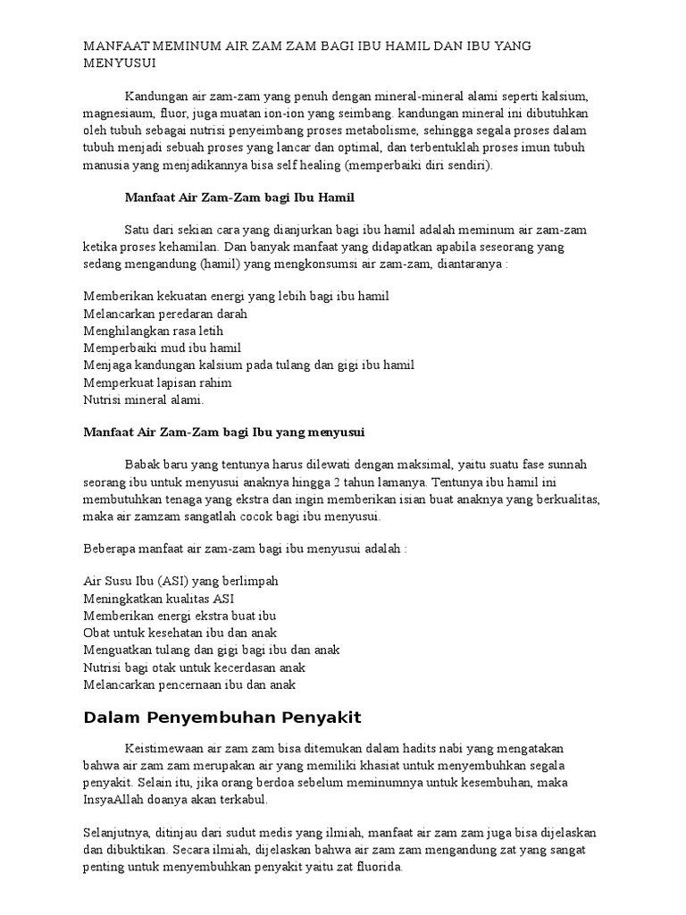 Dari abi thufail dari ibnu abbas radhiyallahu anhu ia berkata. Ini karena air zam zam sudah dipercaya dapat menjadi tambahan energi bagi ibu hamil aar bersemangat dalam menjalankan aktifitasnya sehari hari. Kelebihan ibu hamil minum air zamzam ketika hampir bersalin zam zam my ibu mengandung yang hampir bersalin disarankan untuk minum air zamzam bagi membantu cepatkan bukaan laluan ini pengalaman yang dikongsikan di facebook page kelab soal jawab ibu bakal ibu comel. Selain itu minum air zam zam dapat menyegarkan tubuh sehingga dapat memberikan semangat baru dalam diri dan hal seperti ini sangat penting dan dibutuhkan oleh ibu hamil.