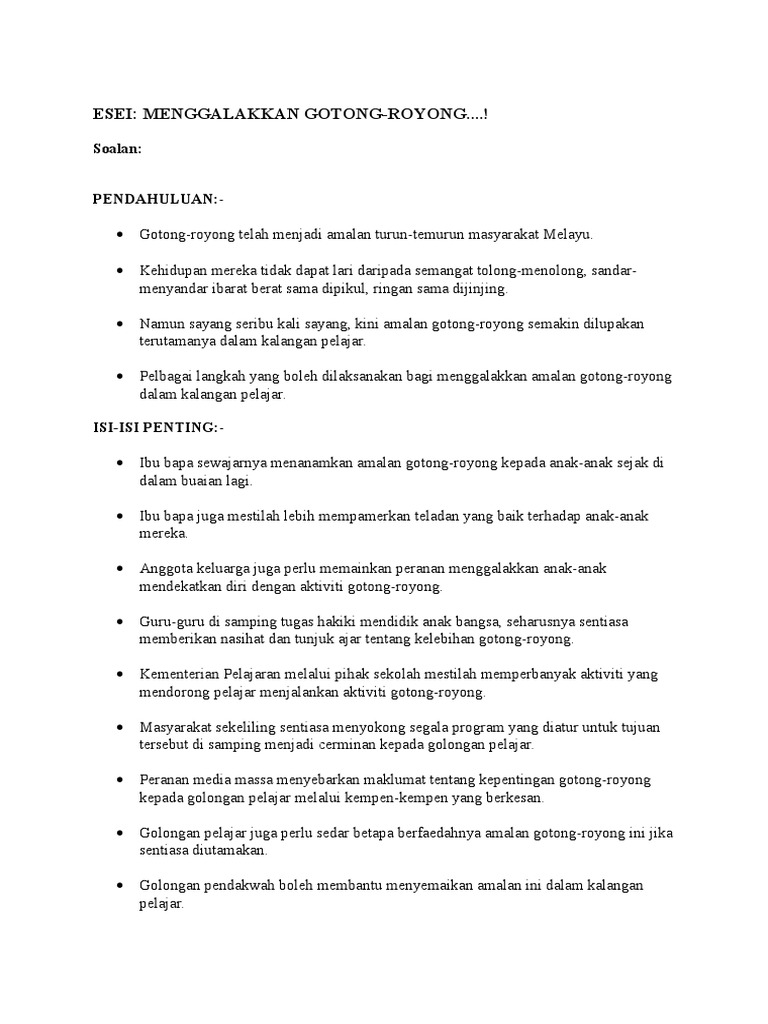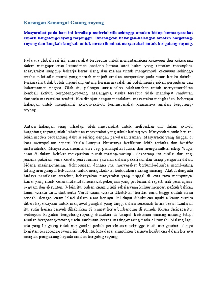 Contoh Karangan Kebaikan Gotong Doc