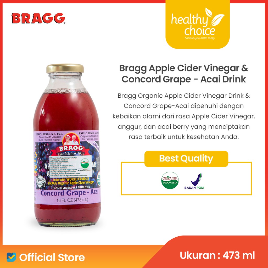 Bragg Organic Apple Cider Vinegar Drink Concord Grape Acai 473 Ml Shopee Indonesia