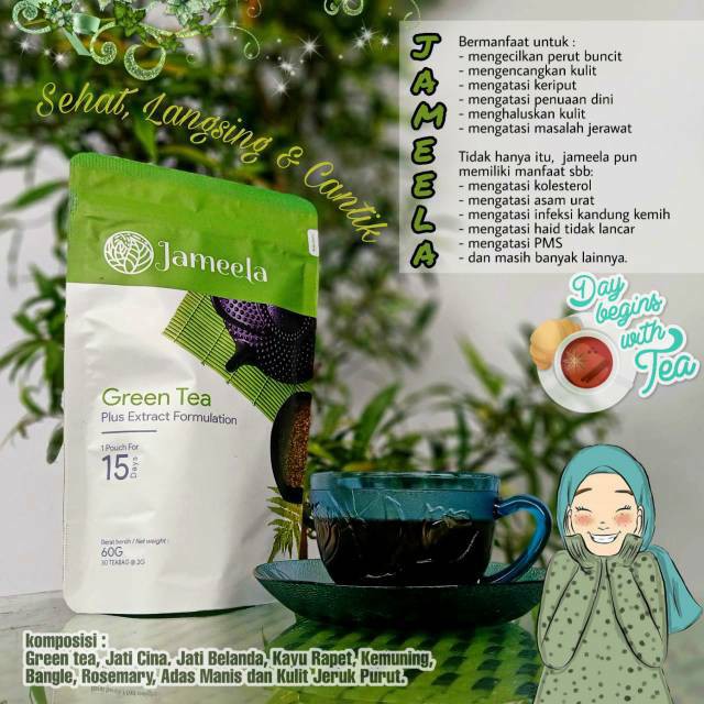 Jameela Green Tea Teh Hijau Diet Plangsing Alami Teabag Clup Shopee Indonesia