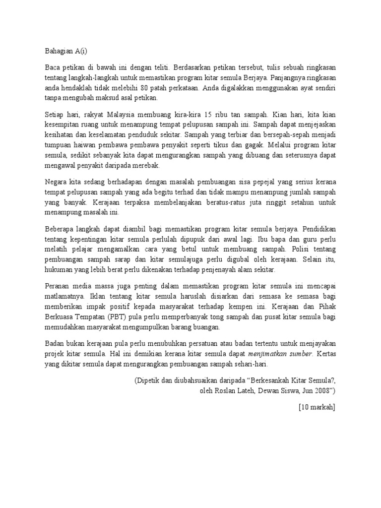 Program kitar semula juga membekalkan bahan mentah untuk industri tertentu misalannya kertas surat khabar lama penting untuk kilang kertas. Ipendidikan karangan kebaikan dan kepentingan amalan kitar semula kepada manusia disemak dan dikemaskini pada pukul 2 07 pm 11 oktober 2020 penulisan karangan bahasa melayu menguji kebolehan para pelajar dalam memberikan idea yang bernas dan penggunaan bahasa melayu yang betul serta tepat. Antara bahan yang boleh dikitar semula ialah tin tin kosong plastik kertas dan tayar tayar lama. Pelbagai program yang dianjurkan oleh dewan bandaraya untuk membuka mata masyarakat tentang kebaikan kitar semula.