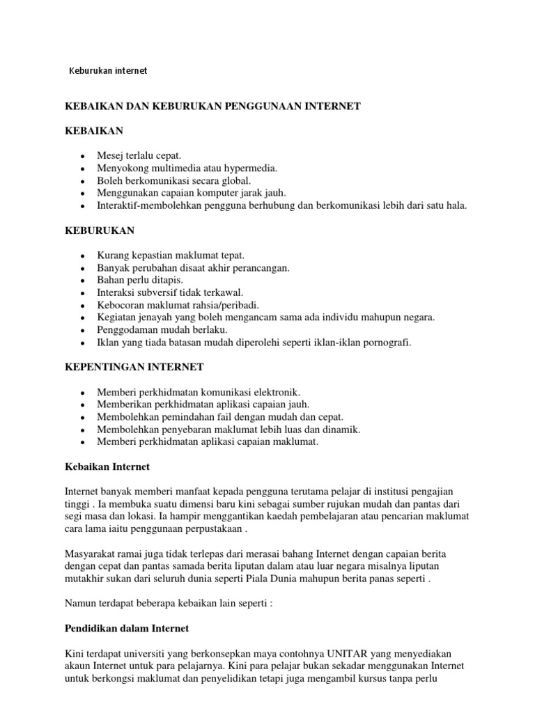 Selain itu telefon pintar juga boleh dijadikan sebagai alat untuk melayari internet. Kesan kesan buruk penggunaan internet kepada remaja hari ini. Namun di sebalik kemajuan teknologi internet yang membawa kepada banyak kemaslahatan kepada saya sudah tentu terdapat banyak keburukan yang boleh menimpa saya jika saya tidak berhati hati dalam menggunakan internet.