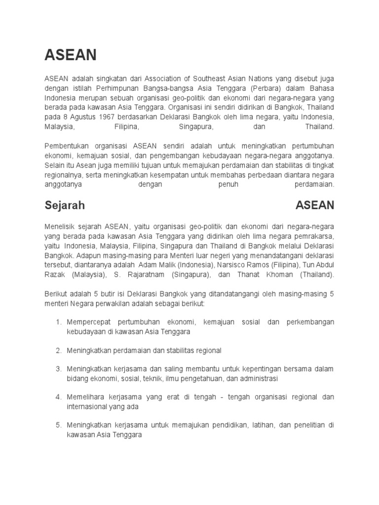 Sejarah Asean Dan Pbb