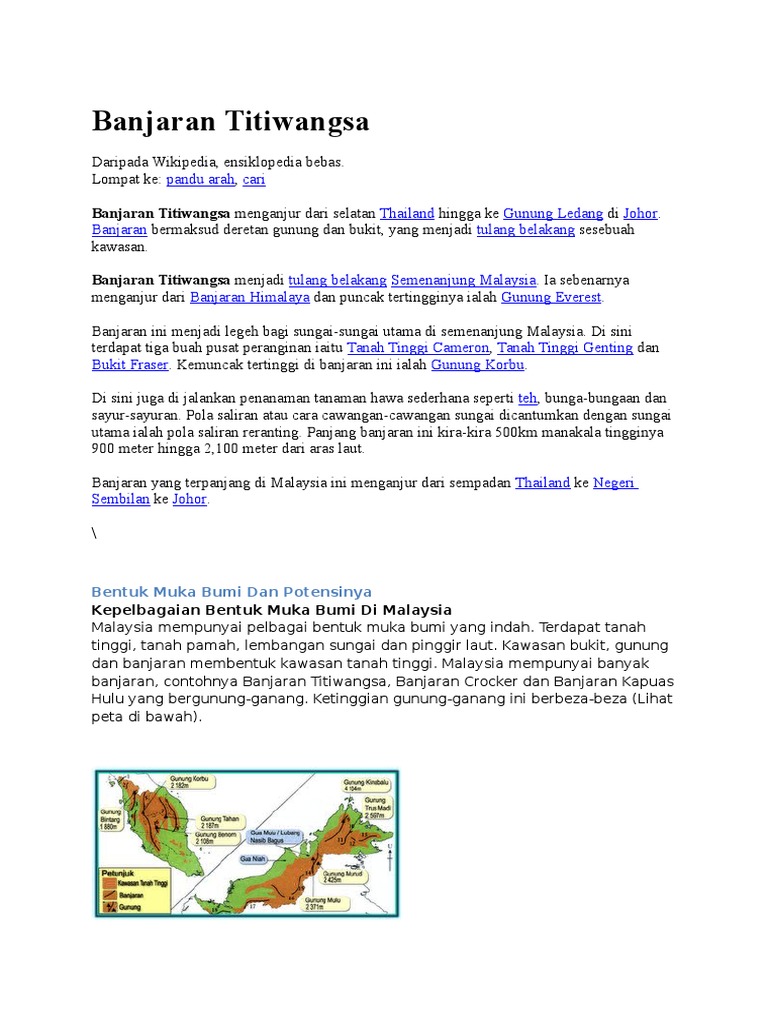 Kemuncak Tertinggi Di Banjaran Titiwangsa