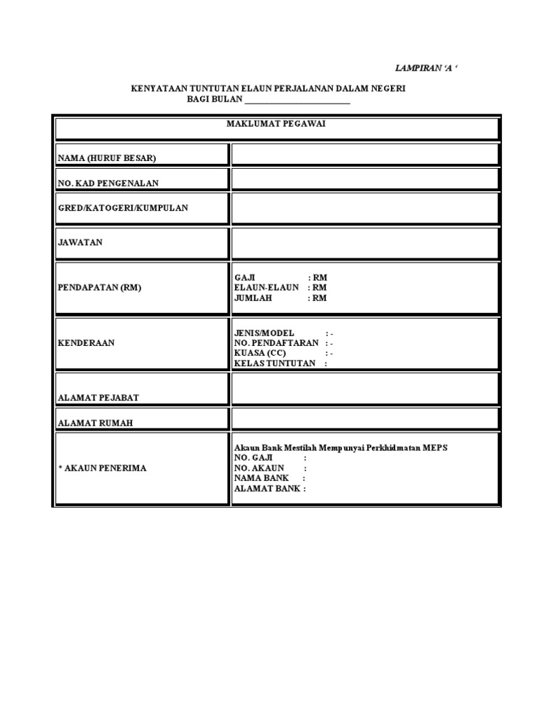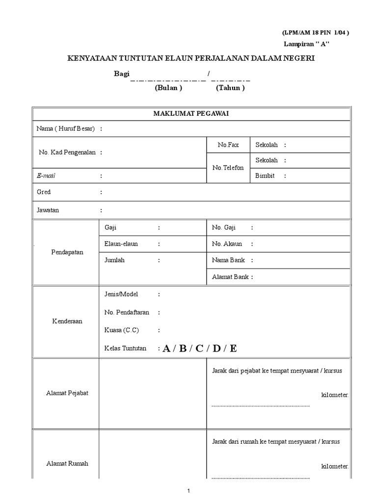 Doc Borang Tuntutan Elaun Perjalanan Dalam Negeri Samuel Louis Academia Edu