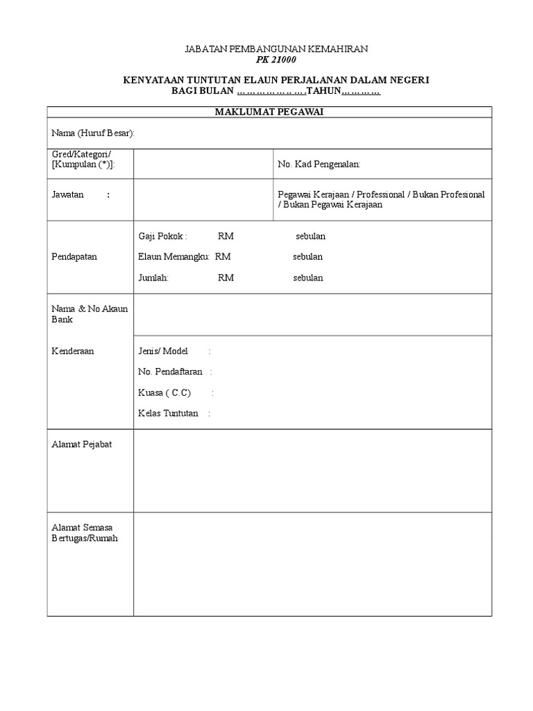 4 perjalanan di dalam malaysia sewaktu pergi dan balik tuntutan elaun perjalanan kenderaan bagi. Pegawai perlu menyatakan dengan jelas butiran tuntutan seperti perincian berikut. 2 borang tuntutan hendaklah diisi dengan lengkap dan teratur. Pre installed user last modified by.