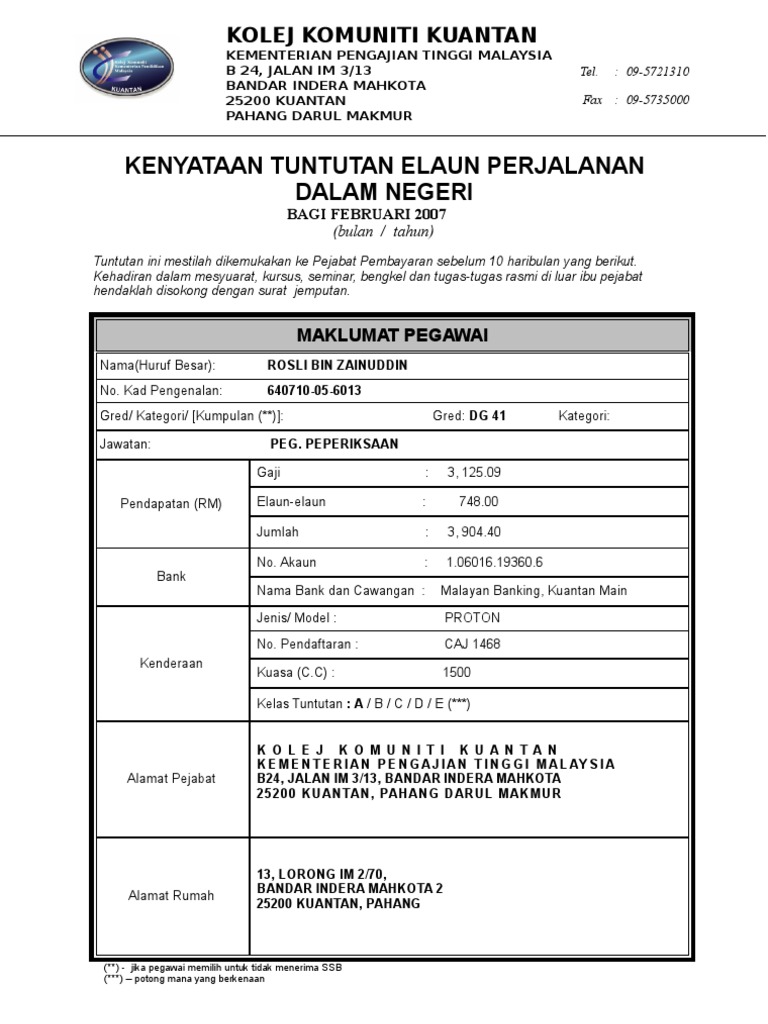 Kenyataan tuntutan elaun perjalanan dalam negeri author. Pre installed organization other titles. 11 6 2001 1 25 00 am company. Kenyataan tuntutan elaun perjalanan dalam negeri.