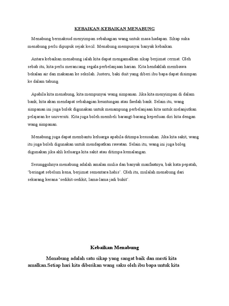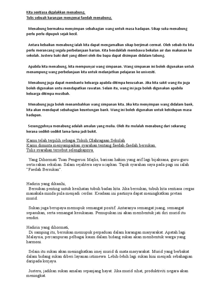 Karangan Faedah Menabung Dan Kebaikan Bersukan