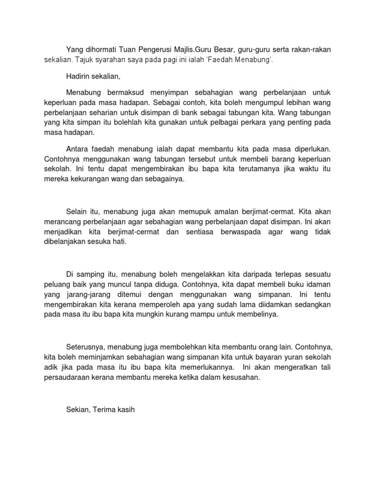 Karangan Upsr Faedah Menabung