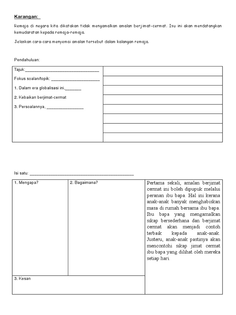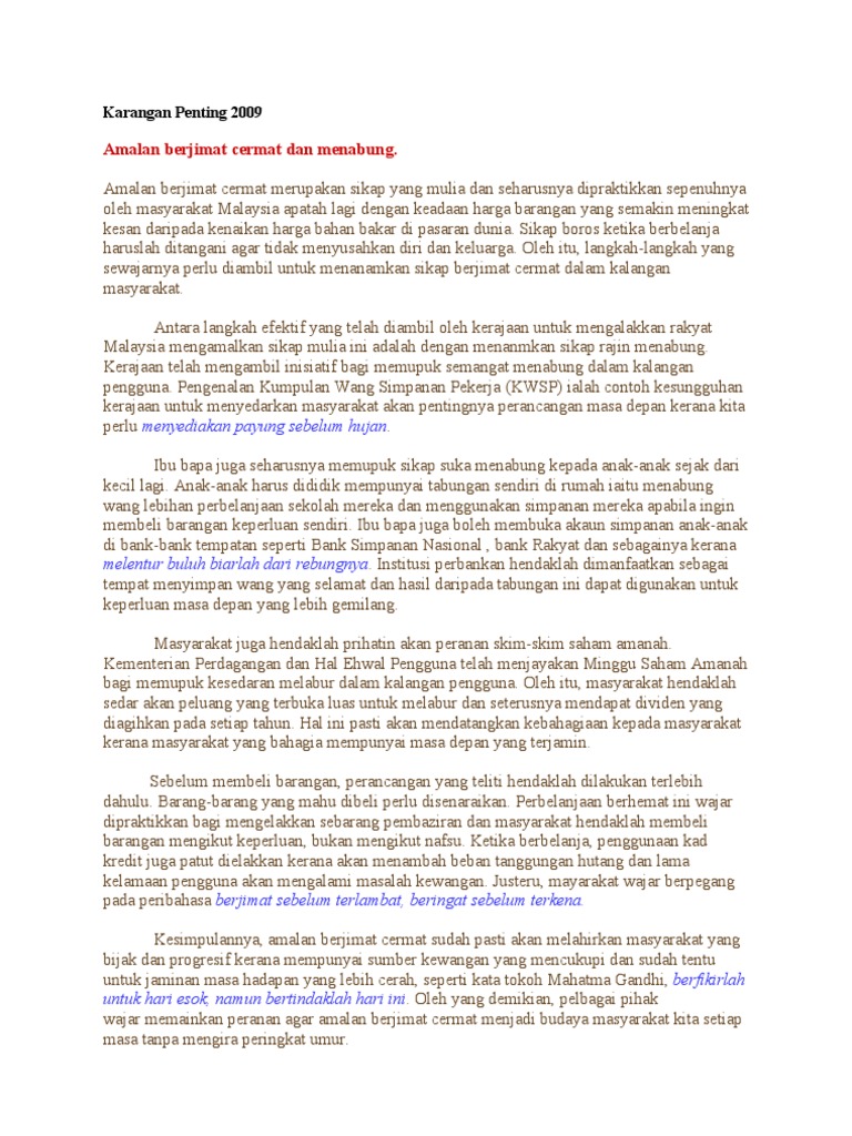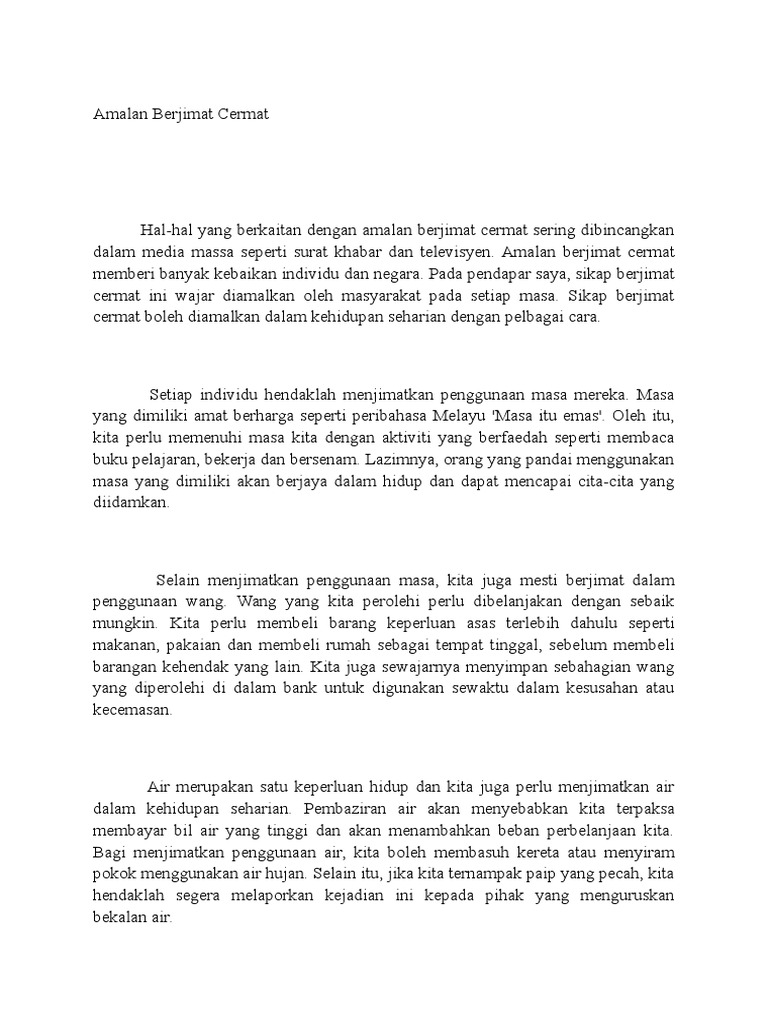Contoh Karangan Spm Amalan Berjimat Cermat
