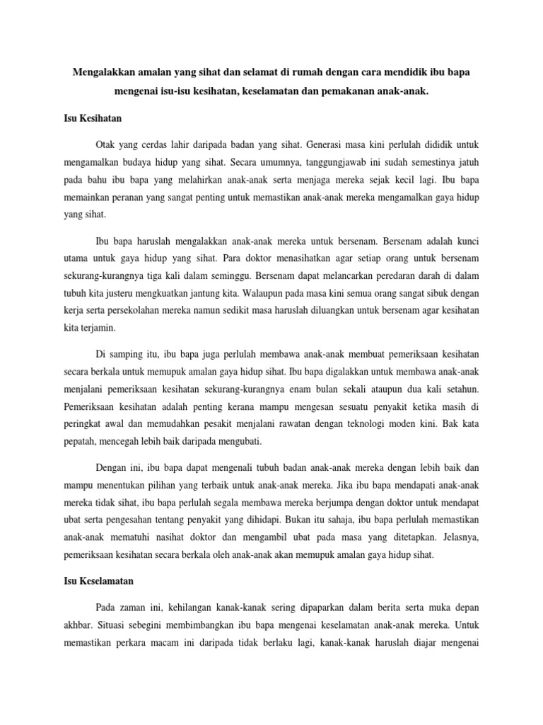 Koleksi Karangan Amalan Gaya Hidup Sihat Dan Pencemaran Alam Project