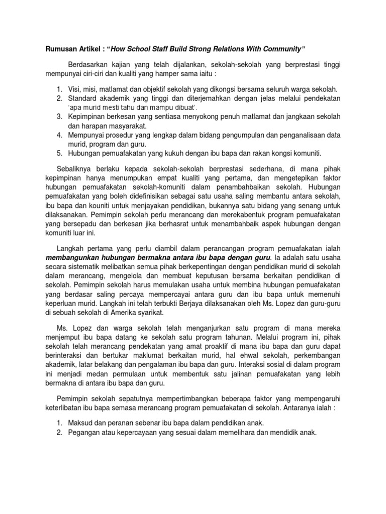Ppismp kg bm ambilan julai 2007 konsep rasional dan kepentingan masyarakat komuniti sekolah dalam sistem sosial komuniti boleh dirujuk sebagai sebuah. Permuafakatan komuniti dan sekolah. Permuafakatan antara sekolah dan komuniti banyak memberi manfaat namun kajian lepas menunjukkan permuafakatan antara sekolah dan komuniti masih terhad. Pengiktirafan sebegini sudah tentu menunjukkan terdapatfaedah tertentu hasil hubungan yang erat antara sekolah dan komuniti.