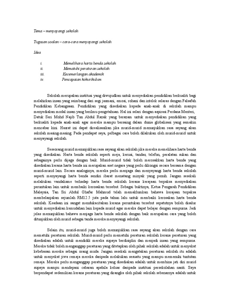 Contoh Karangan Bahagian A Kepentingan Peraturan Di Sekolah