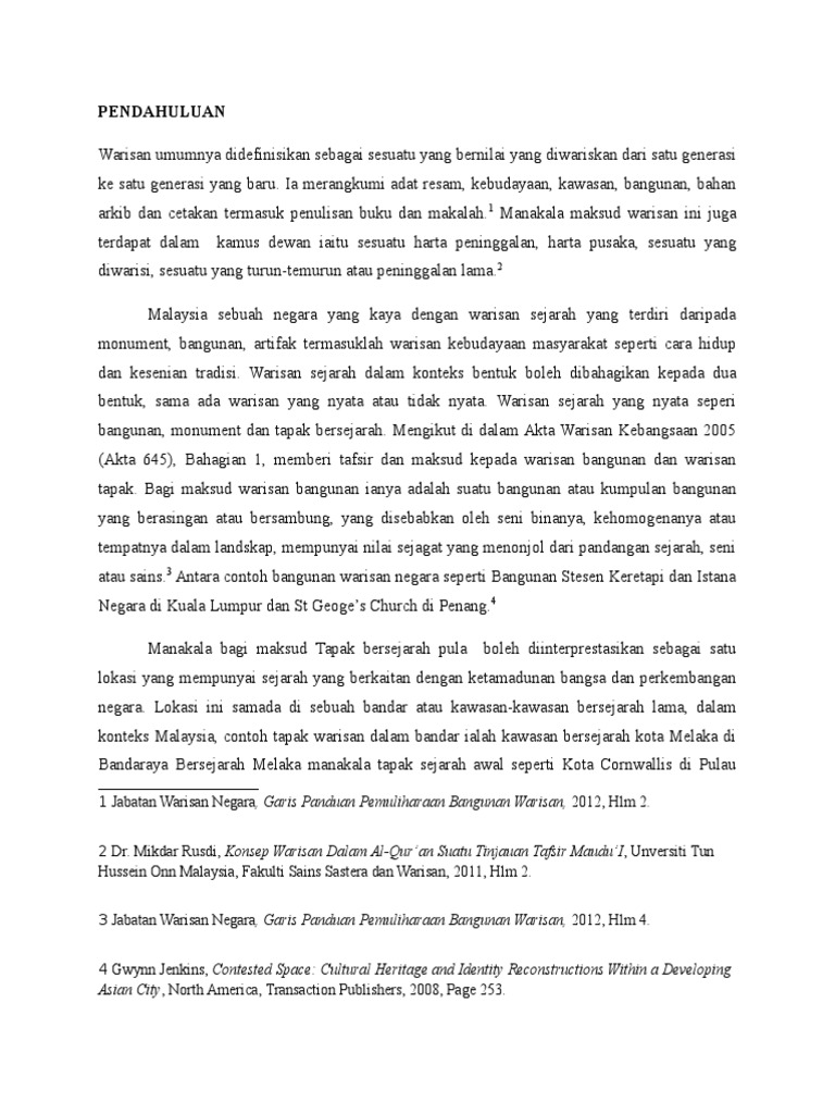 Doc Pelancongan Warisan Dan Penerapan Konsep Pelancongan Lestari Dalam Pemuliharaan Khazanah Negara Satu Diskusi Mohamad Zaki Ahmad And Johan Afendi Ibrahim Academia Edu