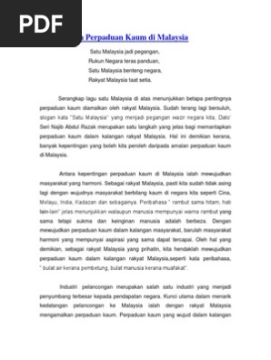 Kepentingan Perpaduan Kaum Di Malaysia Ialah Mewujudkan Masyarakat Yang Harmoni Documents