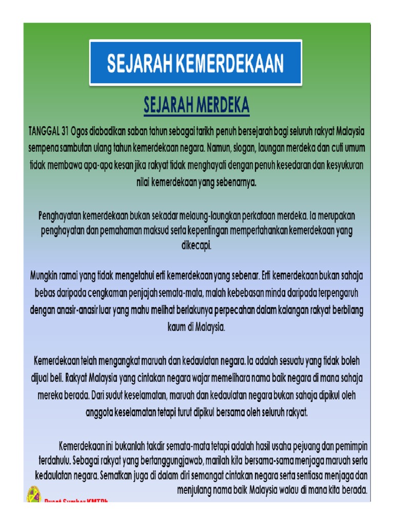 Karangan Kebaikan Sambutan Hari Kemerdekaan Di Sekolah 2014