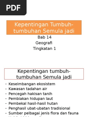 Kepentingan Tumbuh Tumbuhan Semula Jadi Bab 14 Geografi Tingkatan 1