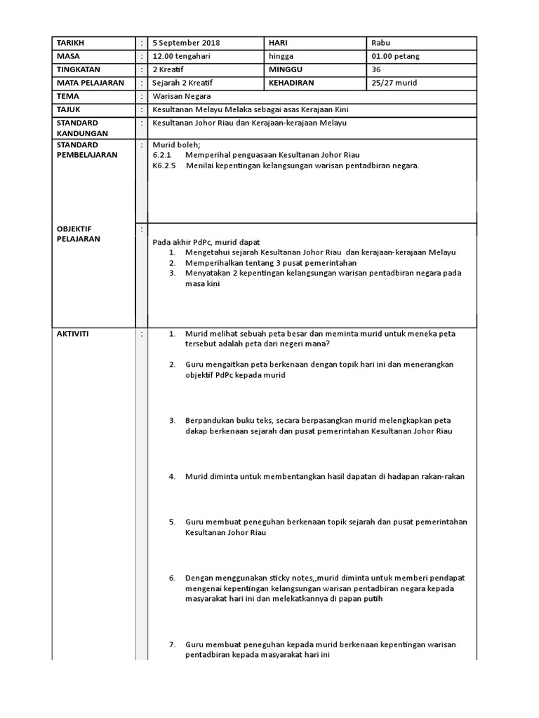 Contoh Rph Sejarah Kssm 2