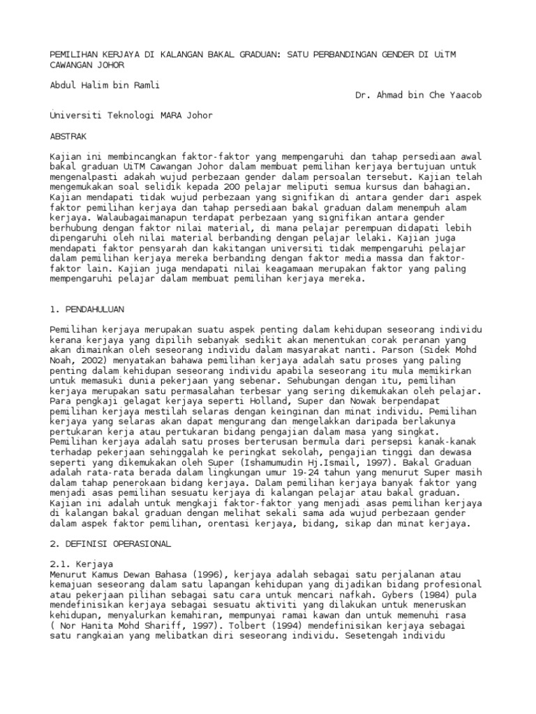 Pemilihan Kerjaya Di Kalangan Bakal Graduan