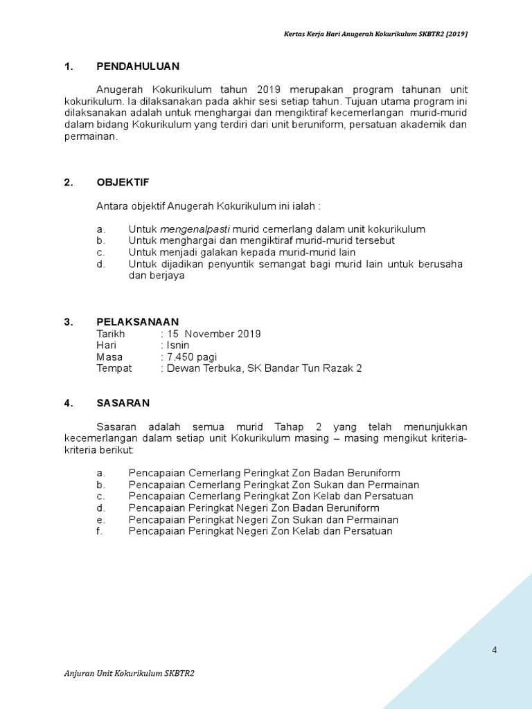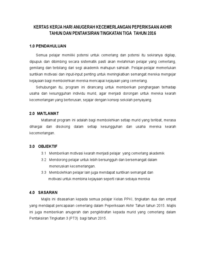 Contoh Kertas Kerja Hari Anugerah Cemerlang
