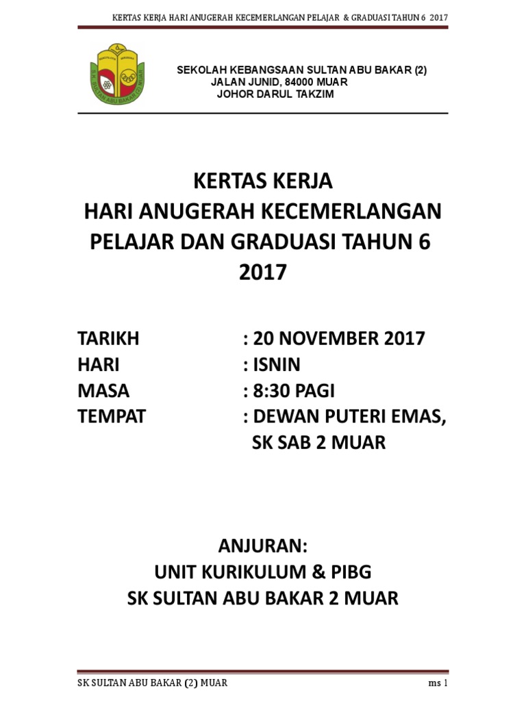 Doc Kertas Kerja Majlis Anugerah Kecemerlangan Smk Bukit Saujana 2018 Saujana Smkbs Academia Edu