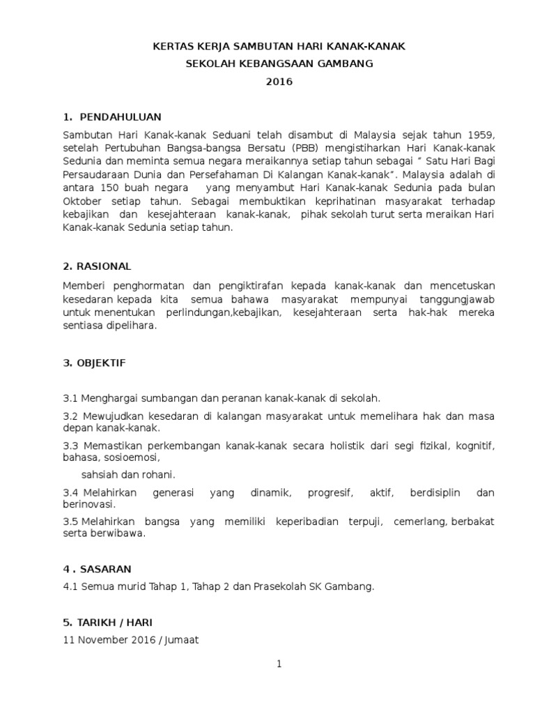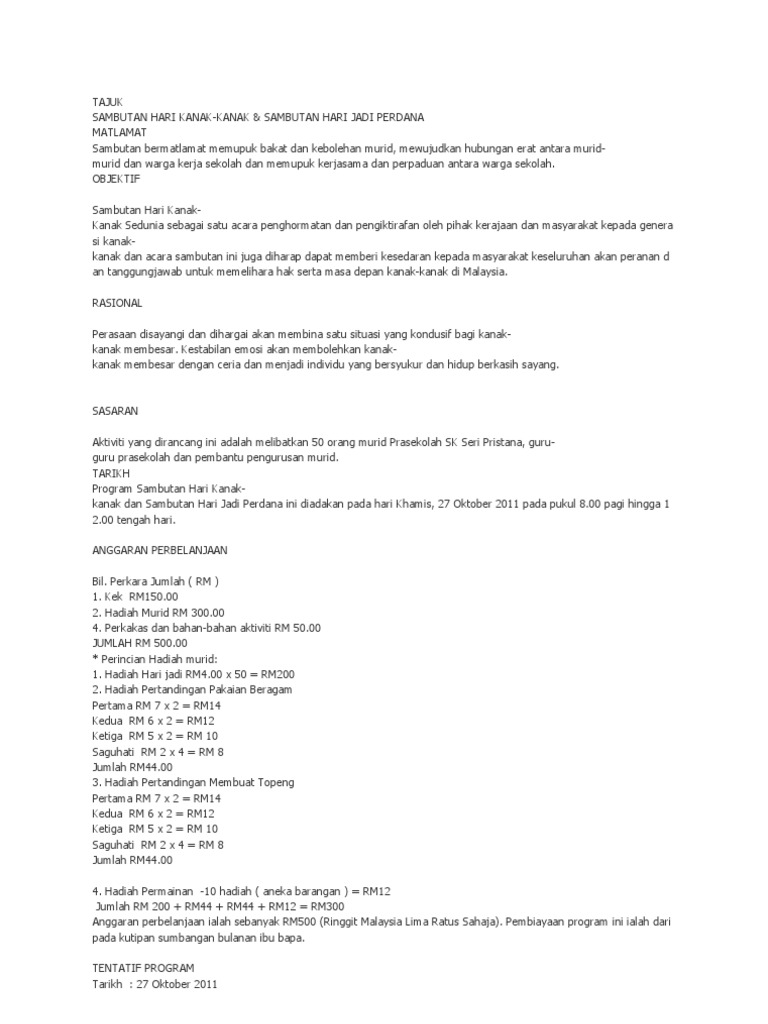Doc Kertas Kerja Sambutan Hari Kanak Kanak 2015 Wan Norzakiah Academia Edu