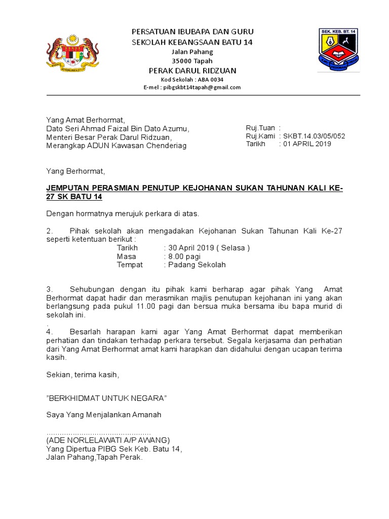52 Surat Jemputan Sukan Sk Bt 14