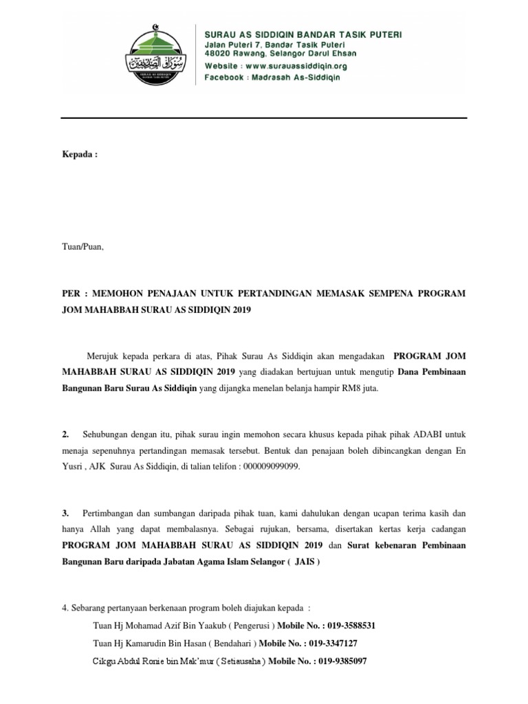 Contoh Surat Memohon Sumbangan Atau Tajaan Pendidik2u